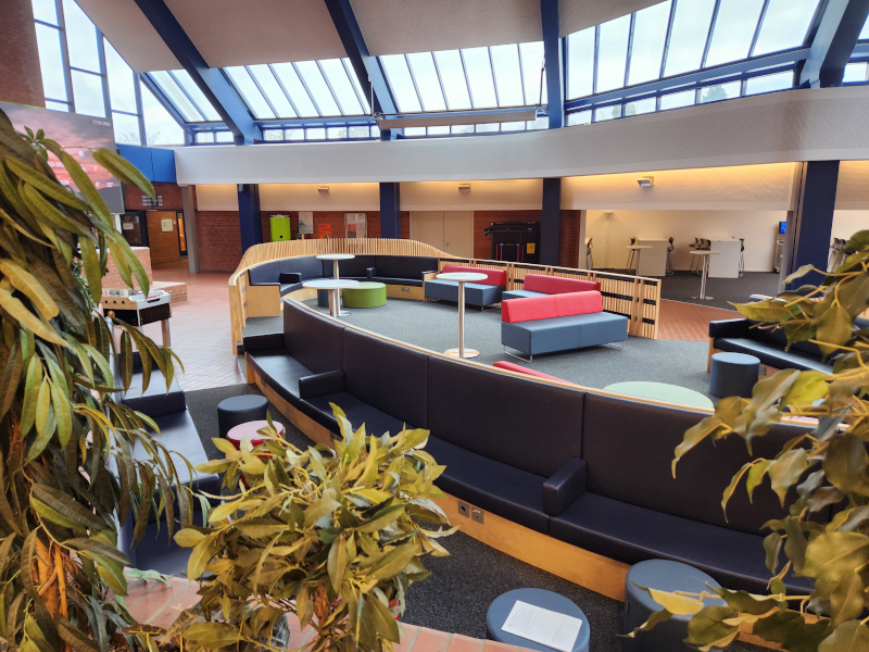 - in offenen Lern- und Arbeitsräumen, die vielfältige Möglichkeiten für analoges und digitales Lernen, Arbeiten, Kommunizieren und Kooperieren bieten